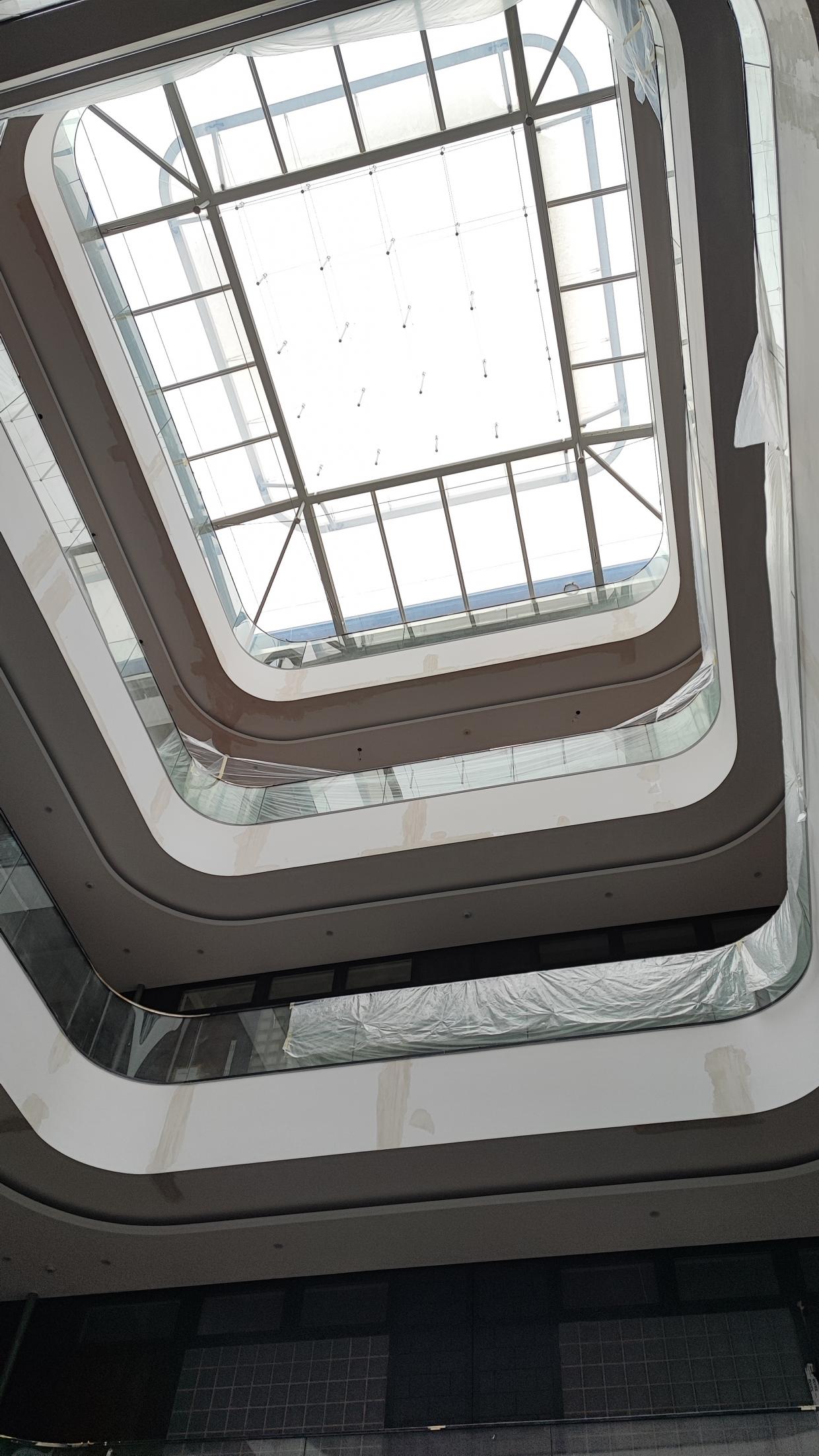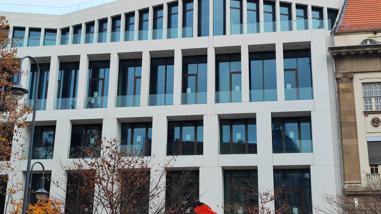 90 m Ganzglasgeländer mit Aufmaß, Planung, Montage, System Balardo Core an Holz-Attika, mit grauem Glas, Abdichtung und individueller Außenverblendung.